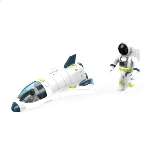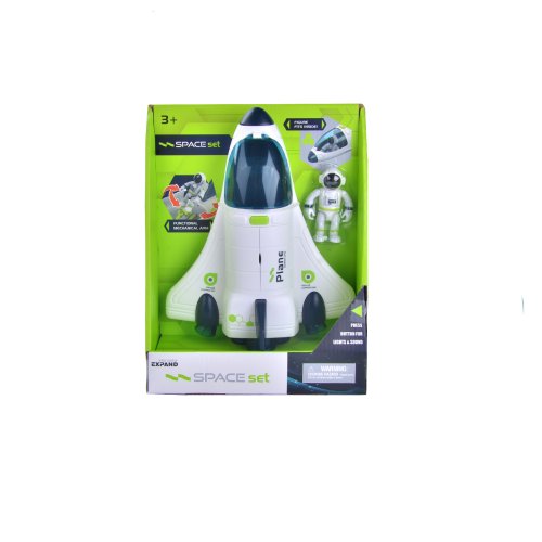 Raketoplán se zvukem a světlem. Otevíratelná kabina, součástí balení je i postavička kosmonauta. Funguje na 2 x AAA 1.5V baterie, které nejsou součástí balení. Velikost raketoplánu je 25 cm.
