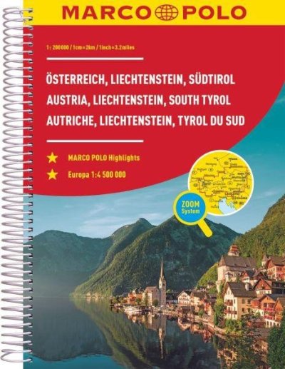 Rakousko, Lichtenštejnsko, Jižní Tyrolsko / autoatlas (spirála) 1:200 000