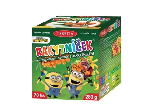 Multivitaminové želatinky Rakytníček obsahují účinnou látku rakytník, směs ovocných koncentrátů a vitaminy na podporu obranyschopnosti organizmu. Skvěle chutnají a neobsahují žádné konzervanty ani barviva. Vhodné pro děti od 3 let. V podobě postaviček legendárních mimoňů.