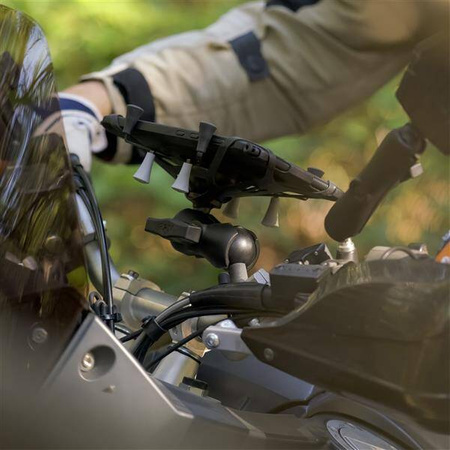 RAM-201U-B se skládá z krátkého ramene s dvojitou objímkou, které pojme 1,5" kulové základny velikosti C, držáky zařízení a adaptéry. S celkovou délkou 3,56" je to nejkratší velikost ramene RAM s dvojitou objímkou. Snadno nastavitelný knoflík umožňuje téměř nekonečnou nastavitelnost pro vaše připojené zařízení.