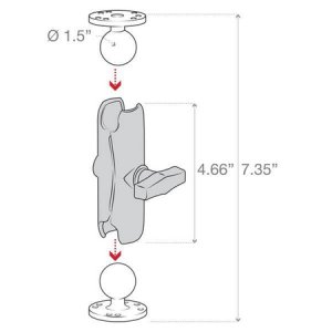 RAM-101U se skládá ze středně dlouhého 1,5" ramene s dvojitým nástrčným pouzdrem velikosti C a dvou kulatých kulových základů o průměru 2,5", které obsahují univerzální vzor otvorů AMPS. Systém kuličky a objímky poskytuje tlumení nárazů a vibrací a umožňuje téměř nekonečnou nastavitelnost pro dosažení ideálního pozorovacího a provozního úhlu vašeho zařízení.