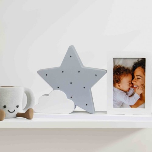 obsahuje rámeček na 1 fotografii (10 x15cm) a hvězdičku s obláčkem