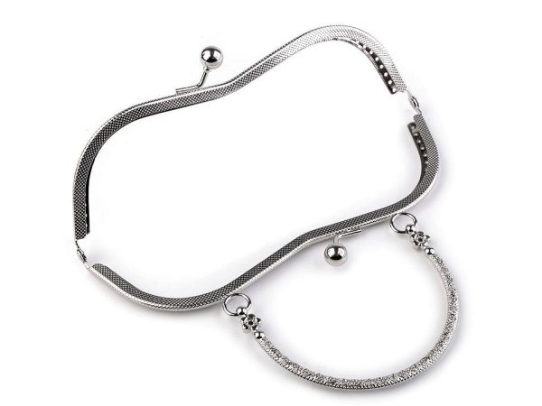 Kovový rámeček se zapínáním se používá na výrobu kabelky. Zapínání má úchyty na ucha o průměru 3 mm. Rámeček je určený pro našití, kdy se látka dovnitř vloží a ručně přešije přes dírky, jejichž rozpětí je 3 mm. Dírky jsou jen na vnější straně rámečku, která je delší než vnitřní, tudíž je našívání jednodušší. Tento typ zapínání využijete určitě na jakýkoliv typ kabelky, ať už společenské nebo určené ke všednímu nošení. Rozměry č. 1: Vnitřní rozměry rozvoru jsou 19 x 11,5 cm. Vnější rozměry rozvoru jsou 19,5 x 13 cm. Výška zavřeného rámečku je 7,5 cm (15,5 cm včetně ucha).