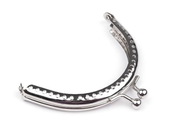 Kovový rámeček se zapínáním na výrobu peněženky. Rámeček je určený pro našití, kdy se látka dovnitř vloží a ručně přešije přes dírky, jejichž rozpětí je 4 mm. Dírky jsou jen na vnější straně rámečku. Tento typ zapínání využijete určitě na jakýkoliv typ peněženky.Vyrobeno z magnetizujícího kovu.