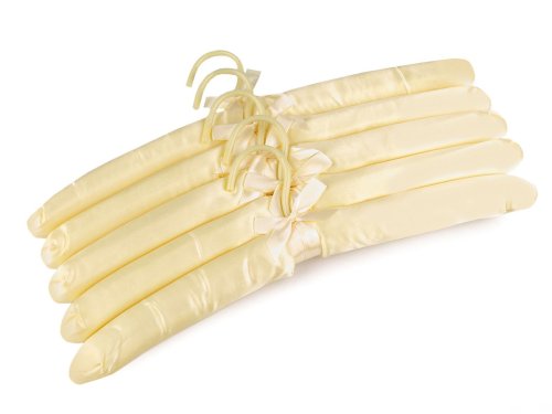 Ramínko na oděvy ocení ve své domácnosti elegantní a romantické duše. Na dotek je měkké a potažené lesklým saténem. Ramínka jsou vhodná na svatební šaty, šaty pro družičky nebo na oděvy z jemných materiálů. Háček je otočný. Ramínko zdobí saténová mašlička. Barvy mašliček se mohou lišit. [Barvy ramínek i mašliček mohou mít různé barevné odstíny.]