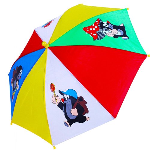 Teď už tě žádný déšť nepřekvapí! Tento nádherně barevný deštník se čtyřmi obrázky legendárního Krtečka a automatickým otevíráním nesmí chybět šatníku! Průměr deštníku po otevření je 70 cm. Tak hurá mezi dešťové kapky! Hlavní vlastnosti: deštník s obrázky legendárního Krtkaautomatické otevíránívhodné od 3 let