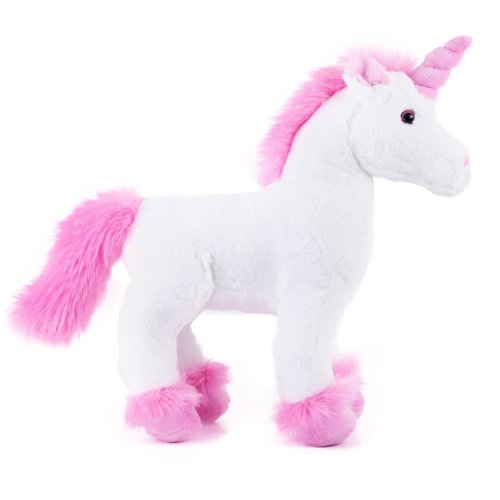 Roztomilý bílý jednorožec s krásnou růžovou hřívou a rohem ve velikosti 32 cm. Je vyroben z kvalitního jemného plyše. Tento plyšový kousek je ideálním dárkem! Hlavní vlastnosti: ruční zpracovánívysoce kvalitní plyš