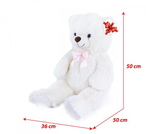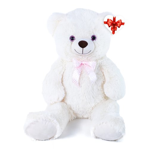 Plyšový medvěd nesmí chybět v žádném dětském pokojíčku! Medvěd ve velikosti 78 cm je vyroben z kvalitní heboučké plyše, má krémově bílou barvu a krk mu zdobí růžová saténová mašle. Tento plyšový kousek je ideálním dárkem pro malé i velké! Součástí je papírová visačka ve tvaru srdíčka, na kterou můžete napsat věnování. Hlavní vlastnosti: visačka pro věnováníruční zpracovánívysoce kvalitní plyš
