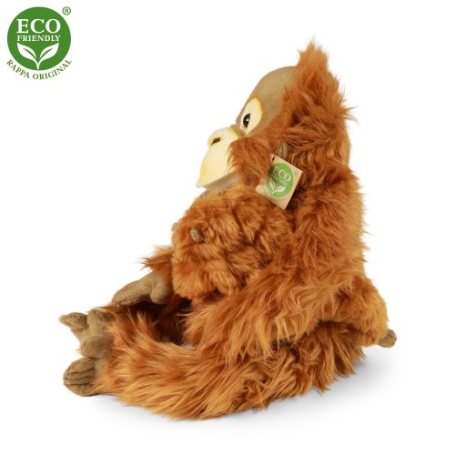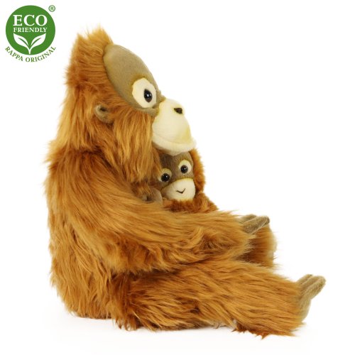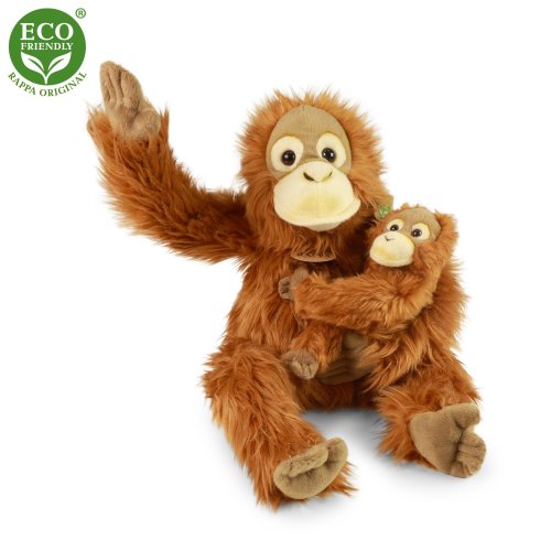 Plyšový orangutan s mládětem o velikosti 28cm je ručně ušitý z vysoce kvalitního, jemného plyše, a díky tomu vypadá jako živý. Součástí je mláďátko ve velikosti 15 cm, které se dá po odstřižení oddělit. Tento plyšový kousek je ideálním dárkem pro všechny milovníky heboučkých plyšáků. Je součástí exkluzivní kolekce plyšových hraček značky RAPPA. Hlavní vlastnosti: realistické zvířátkoruční zpracovánívysoce kvalitní plyšECO-FRIENDLY výplň Co to vlastně ECO‑FRIENDLY znamená? Výplň plyšové hračky je vyrobena z recyklovaných PET lahví. Tento materiál je zcela bezpečný, na omak nerozeznatelný od standardní výplně a plně atestovaný pro bezpečnost i těch nejmenších. Rozhodli jsme se jít zelenou cestou co nejméně zatěžující životní prostředí – cestou ECO‑FRIENDLY.