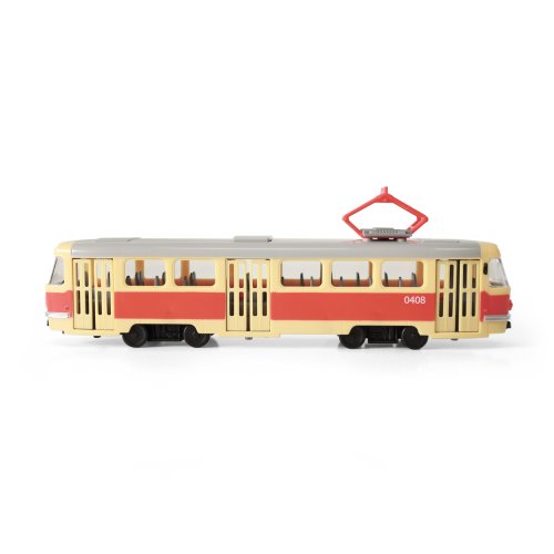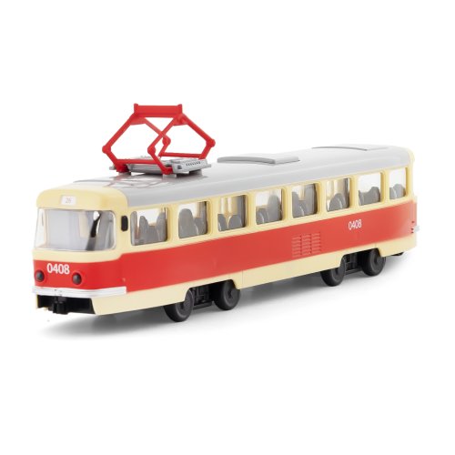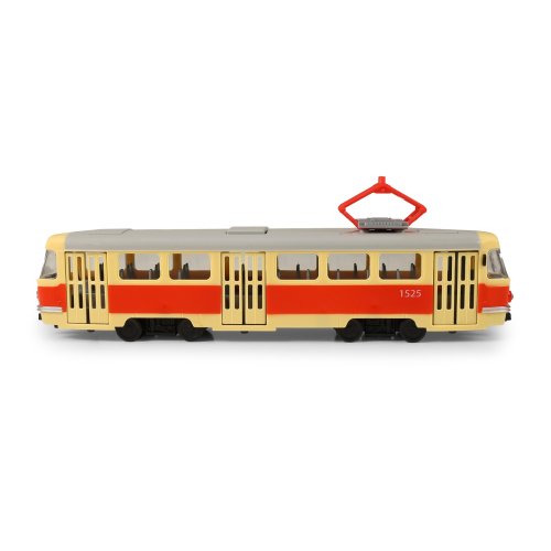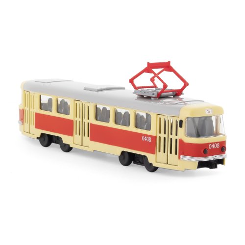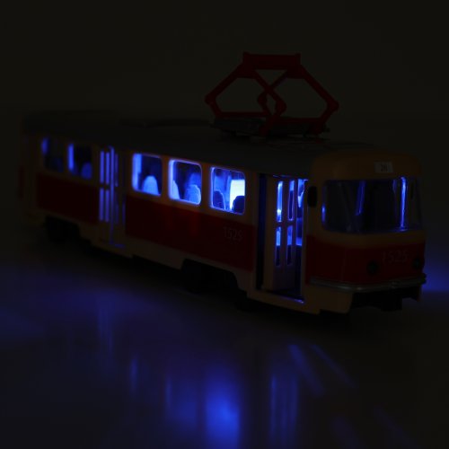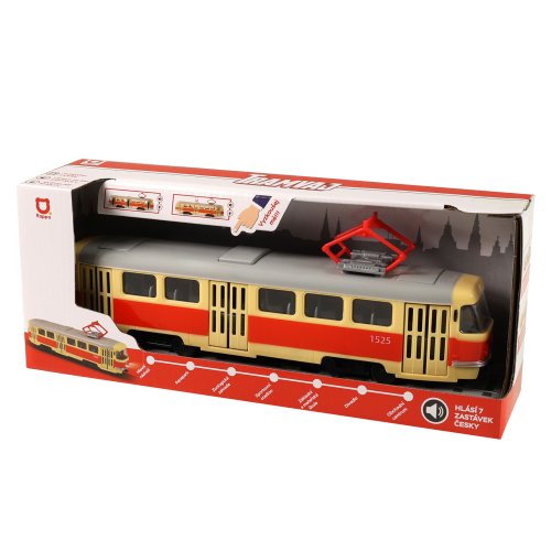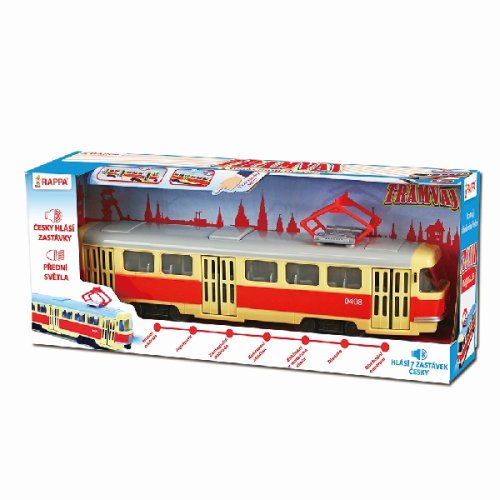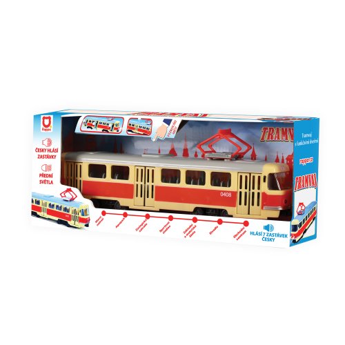 Originální červeno-bílá tramvaj T3 v měřítku 1:54, která oznamuje stanice v českém jazyce, je určitě tím pravým dárkem pro vaše děti! Tramvaj jezdí na volný chod, dveře lze manuálně otevřít a zavírají se pomocí tlačítka umístěného na střeše vozu. Při každém otevření se ozve hlášení, při zavření hlásí další zastávku. Otevřením předních dveří se v tramvaji rozsvítí modré světlo. Tahle unikátní hračka v délce 28 cm, je vyrobená z plastu a vyžaduje použití 3 ks baterií LR44/AG13, které jsou její součástí. V roce 2020 vyhrála 3. místo v soutěži Hračka roku v kategorii Klučičí hračky v České republice.
