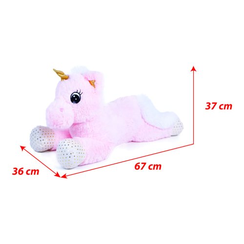 Roztomilý jednorožec kouzlem promění každý pokojíček na království z pohádek. Díky své velikosti se stane nepřehlédnutelnou ozdobou a společníkem při hrách i odpočinku. Je vyroben z kvalitního jemného plyše. Skvělý dárek pro malé i velké princezny! Hlavní vlastnosti: velikost 70 cmvysoce kvalitní plyš