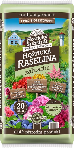 Hoštická rašelina zahradní je směs vytříděné světlé a tmavé rašeliny. Má všestranné využití v zahradnictví, lesnictví i v zemědělství. Je vhodná ke zlepšování zahradních půd, k jejich provzdušňování, vylehčování a úpravě pH. Umožňuje dobrý růst a bohatou tvorbu kořenů. V půdě zadržuje vláhu a chrání rostliny před vysycháním. Tím, že obohacuje půdu o organické látky, zlepšuje zadržování živin pro rostliny a zamezuje jejich vyplavování do spodních vod. Jedná se o čistě přírodní produkt, nemá upravené pH a nemá přidané živiny. Balení: 20 l.