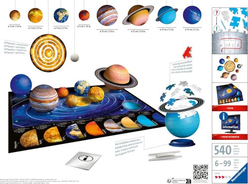Puzzle Ravensburger 2411668 planetární soustava Balení obsahuje puzzle k sestavení 3D modelu sluneční soustavy Puzzle se skládají ze 522 plastových dílků K sestavení není potřeba lepidlo, i tak je výtvor …