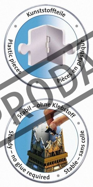 Užijte si skládání trojrozměrných puzzle! Po úspěchu s koulí Puzzleball a pyramidou Puzzlepyramid se RAVENSBURGER pustil do další výzvy - a tou jsou stavby. Speciální zakřivené nebo ohebné dílky, které přesně zapadnou na své místo, umožňují postavit fascinující modely slavných budov. Dílky vyrobeny z pevného plastu zaručí vynikající stabilitu, a celá stavba drží bez nutnosti lepení. Díky originálním doplňkovým dílkům budou vaši stavbu všichni obdivovat. Balení obsahuje: 216 očíslovaných dílků puzzle, 8 dílů příslušenství a návod. Eiffelova věž je ocelová věž v Paříži, v současnosti nejznámější pařížská dominanta. Dnes měří včetně antény na vrcholu 324 metrů. Je pojmenována po svém konstruktérovi Gustavu Eiffelovi. Rozměr složeného puzzle cca 18 x 18 x 44 cm
