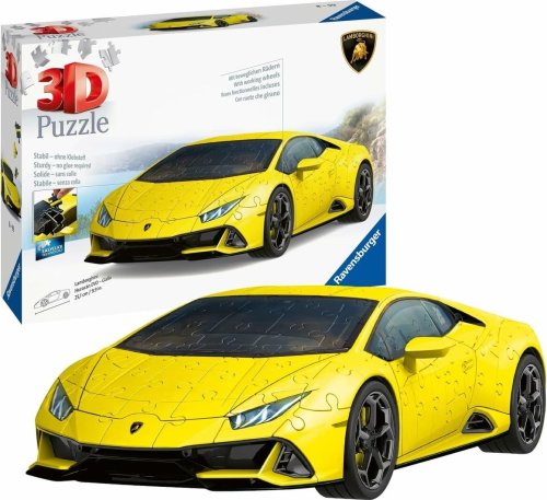 Rádi byste měli vlastní Lamborghini? Postavte si sporťák Lamborghini Huracán Evo, který je dokonalým spojením technologie a designu. Barevný 3D model v žluté barvě a pohyblivými koly je replikou skutečného automobilu v měřítku 1:18. Speciální zakřivené dílky přesně zapadnou na své místo a umožňují postavit fascinující model. Dílky vyrobeny z pevného plastu zaručí vynikající stabilitu, a celý model drží bez nutnosti lepení. Díky originálním doplňkovým dílkům budou Váš model všichni obdivovat. 3D puzzle RAVENSBURGER lze skládat podle motivu (obtížnější varianta) nebo podle praktického číslování na zadní straně dílků. Balení obsahuje: 108 očíslovaných dílků puzzle, 48 dílů příslušenství a návod. Rozměr složeného puzzle cca 25,1 x 12,4 x 6,5 cm