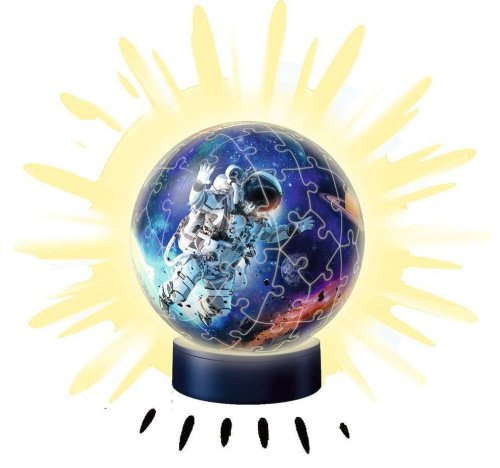Díky noční edici Nachtlicht od Ravensburgeru může mít okouzlující svítící kouli s vesmírným motivem i Vaše dítě. Puzzle je velmi oblíbené nejen díky snadné manipulaci, ale i stabilitě. Ke skládání nepotřebujete lepidlo, speciálně vyrobené zakřivené dílky do sebe jednoduše zapadnou a drží tvar. Skládat lze podle obrázku nebo podle čísel - plastové dílky jsou ze zadní strany očíslovány. Průměr puzzleballu je 13 cm. Balení obsahuje: