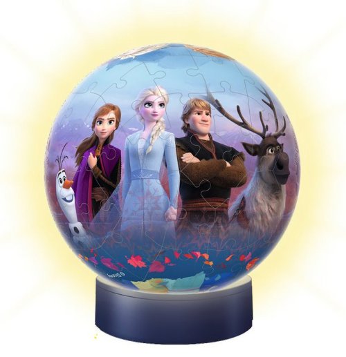 Druhé pokračování filmové série Ledové království nyní i ve formě dekorativního puzzleballu, který se po tlesknutí sám rozsvítí. Dokonalá koule bez použití lepidla - to je 3D Puzzle Ball® od RAVENSBURGER . Každý z perfektně propracovaných 72 plastových dílků se podílí na vytvoření pevné, hladké koule. Speciální zahnuté dílky jistě zapadají do sebe a koule je po sestavení překvapivě stabilní. Balení obsahuje předlohu, návod a podstavec. Puzzleball® má po sestavení průměr 13 cm. Doporučeno pro děti od 6 let. Rozměr složeného puzzle cca průměr 13 cm