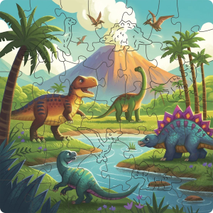 Jedinečné dílky puzzle do sebe perfektně zapadají. Součástí jsou 4 dřevěné figurky.