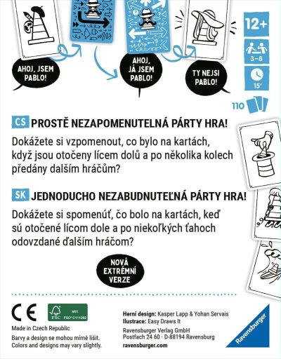 Zahrajte si tuto neopakovatelnou hru plnou blufování se svou rodinou a přáteli ještě dnes a užijete si spoustu zábavy i špetku bláznivého chaosu. Jednoduché. Nezapomenutelné. Zábavné. Úžasné! Principem hry je, že si navzájem předáváte karty a snažíte se zapamatovat, kdo má jakou kartu právě před sebou. Pokud přesně nevíte, která karta je před vámi, musíte přesvědčivě blafovat – jinak dostanete trestné body. Kdo má na konci nejméně trestných bodů, vyhrává! Ve hře TO (NE)CHCEŠ! Inkognito při předávání karty pojmenujete kartu tím, že se představíte jako libovolná postava, která vás napadne na základě obrázku na kartě. Balení obsahuje: 110 herních karet, pravidla hry