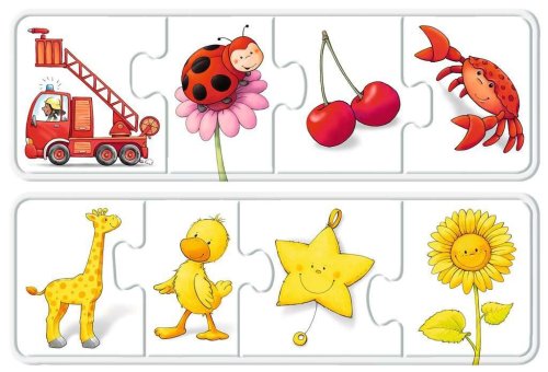 Čtyř dílkové puzzle speciálně vytvořené pro nejmenší děti, které je seznamuje s barvami a učí je pojmenovávat zvířátka. Robustní pevné dílky jsou vyrobeny z extra silného kartonu a podporují u dětí rozvoj motoriky, soustředění a fantazii.