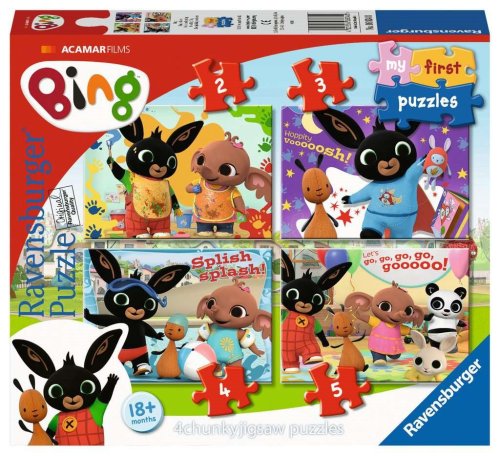 Sada barevných puzzle pro nejmenší s králíčkem Bingem a jeho přáteli.