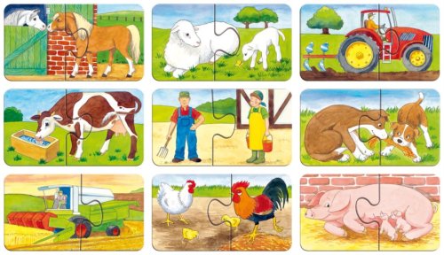 Dvoudílné puzzle s krásnými obrázky speciálně vytvořené pro nejmenší děti. Robustní pevné dílky jsou vyrobeny z extra silného kartonu a podporují u dětí rozvoj motoriky, soustředění a fantazii. Mezi devíti obrázky nechybí zvířátka ze statku ani zemědělské stroje (kombajn, traktor). Německé RAVENSBURGER puzzle drží přední příčku v oblíbenosti i prodejnosti mezi světovými výrobci puzzle. Každý dílek je v prvotřídní kvalitě a dílky přesně zapadají do sebe. Díky použití impregnovaného lnu je obrázek puzzle bez reflexů. Puzzle Ravensburger má ohebné a stabilní dílky a je vyrobeno z recyklované lepenky. Rozměr složeného puzzle cca 18 x 10 cm