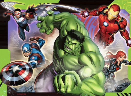 Čtyři puzzle s různou obtížností od 12 do 24 dílků s akčními hrdiny Avengers. Doporučeno pro děti od 3 let. Rozměr složeného puzzle cca 4 x 19 x 14 cm