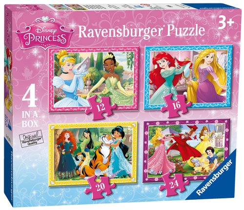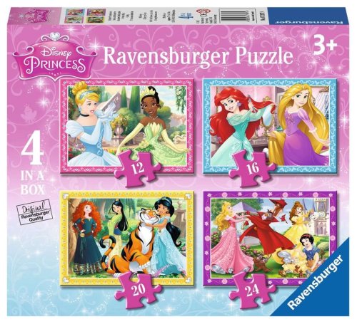 Čtyři puzzle s různou obtížností od 12 do 24 dílků s motivy nádherných Disney Princezen starostlivě se starajících o své blízké.