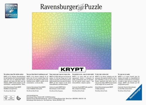 Skutečná výzva - puzzle skládané pouze podle tvarů dílků! Vidíte, že nic nevidíte :-) - žádný obrázek, jen jednobarevná plocha. KRYPT je největší výzvou pro všechny fanoušky puzzle. Není to tištěný obrázek, ale tvary jednotlivých kousků, podle kterých musíte skládat. KRYPT se skládá ze 654 kousků neobvyklých tvarů - žádné dva dílky nejsou stejné. Barva: růžová Německé RAVENSBURGER puzzle drží přední příčku v oblíbenosti i prodejnosti mezi světovými výrobci puzzle. Není divu, když vyrábí puzzle již od r. 1891. Puzzle pro dospělé jsou vyrobeny s použitím "Softclick Premium Puzzle" technologie, která používá tlustší a silnější desky (vyrobeny speciálně pro Ravensburger), a ručně vyráběné výsekové raznice, což má za následek dílky hladké a bez papírového prachu a vynikající zapadání dílků do sebe. Rozměr složeného puzzle cca 70 x 50 cm