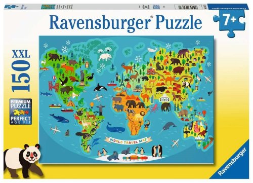 RAVENSBURGER Puzzle Mapa světa divokých zvířat XXL 150 dílků