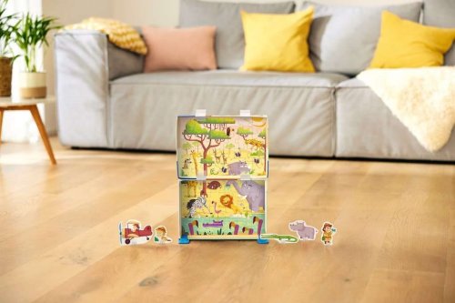 2 puzzle v jedné krabičce spojením obou částí krabičky sestavíte malé divadélko puzzle se skládá do krabičky a slouží jako pozadí divadélka součástí sady jsou postavičky, se kterými si děti mohou hrát