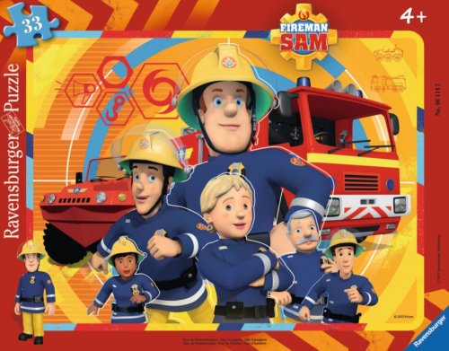 Pestře malované deskové puzzle s 33 dílky z animovaného seriálu Požárník Sam.