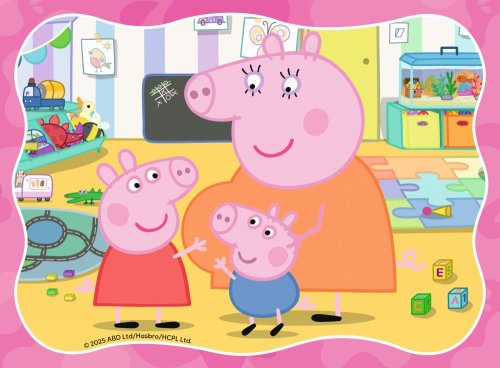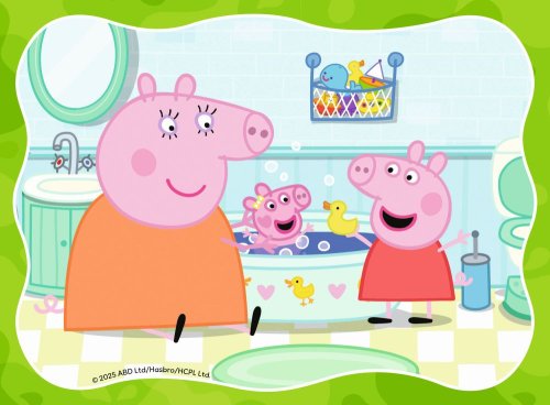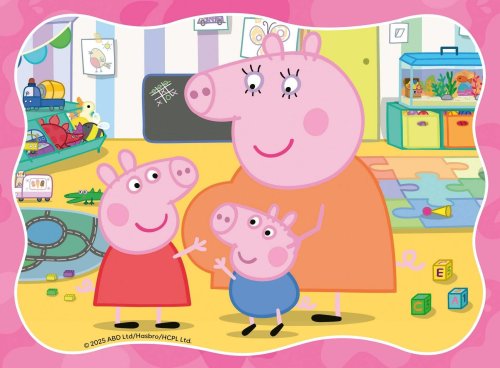 Progresivní puzzle s různou obtížností - 4 puzzle s 12 - 24 dílky, s vyšším počtem dílků se zmenšuje jejich velikost. Rozměr složeného puzzle cca 19 x 14 cm