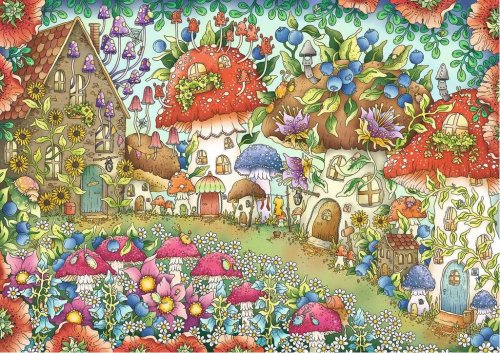 RAVENSBURGER Puzzle Roztomilé houbové domečky na květinové louce 1000 dílků