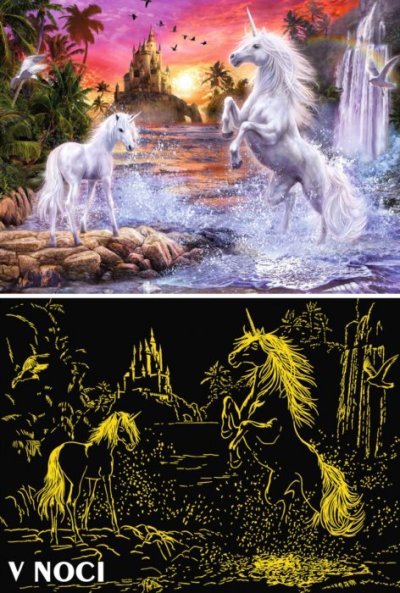 Neonové - fluorescenční puzzle svítící jednobarevně ve tmě ze série STAR LINE. Puzzle má speciální potisk, který po nasvícení ve tmě svítí. Rozměr složeného puzzle cca 49 x 36 cm
