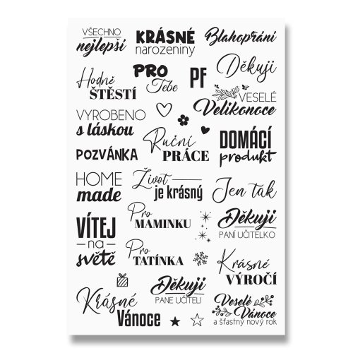 Originální gumová razítka s českými nápisy k výrobě drobností k narozeninám, svátkům, Vánocům a dalším speciálním příležitostem.