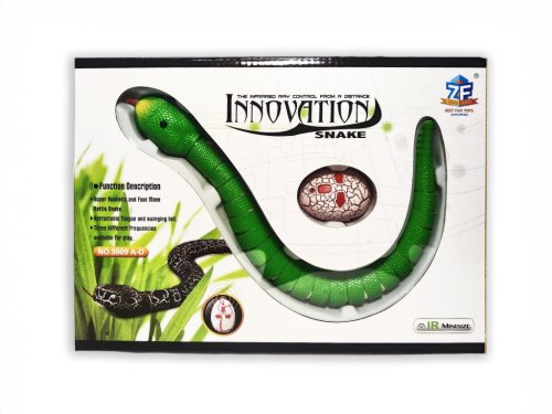 Had chřestýš na dálkové ovládání, který se pohybuje i vypadá jako opravdový. Had se pohybuje vpřed, do stran, má pohyblivý jazyi i ocas. V balení naleznete ovladač ve tvaru hadího vejce. Hračka obsahuje dobíjecí baterii 3,7V 500mah, ovladač vyžaduje 3× LR44 baterii, jsou součástí. Infrared, dosah ovladače až 8 metrů, hrací doba 30 min. Na výběr čtyři barevné varianty. Vhodné pro děti od 6ti let.