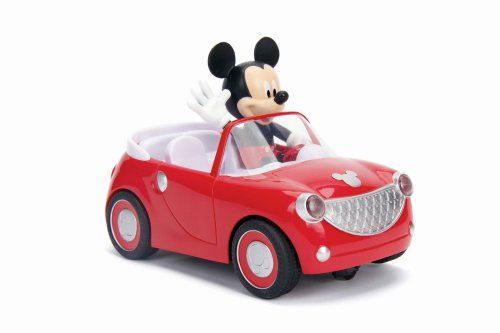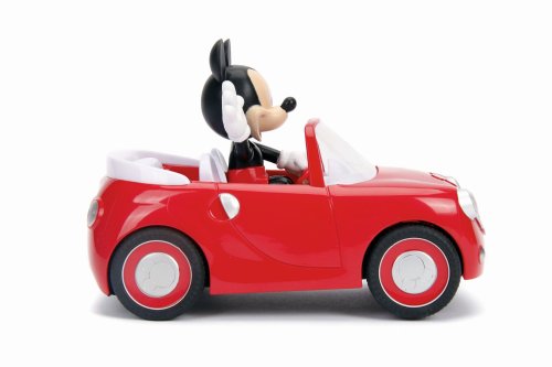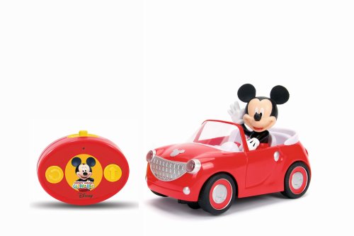 RC autíčko s Disney Mickey, 1-kanál, frekvence 2,4 GHz, jede vpřed rovně a vzad. V červené barvě. Délka 19 cm.
