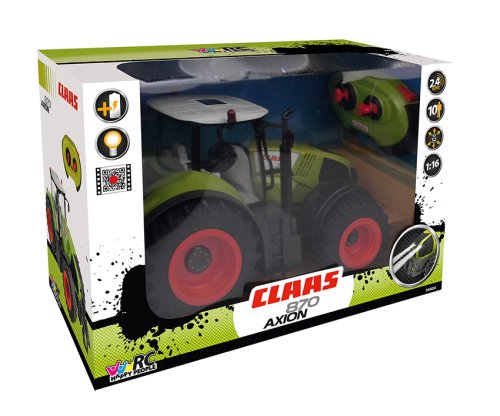 Traktor CLAAS je věrnou kopií skutečného traktoru. Má plnou funkci řízení a řazení. Funkční přední, zadní světla a otočná kola. Traktor je na dálkové ovládání s frekvencí 2,4 GHz. Traktor je na baterie 4xAA, ovladač 2xAAA. Baterie jsou součástí balení. Vhodné pro děti od 6 let.