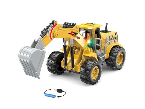 RC vozidlo v měřítku 1:22 představuje detailně zpracovaný model inženýrského trucku, který je vyroben v jasně žluté barvě připomínající klasické stavební stroje. Vozidlo je vybaveno robustními terénními koly s výrazným vzorkem, což zajišťuje dobrou stabilitu a přilnavost na různých površích. Výrazná lopata na přední části je funkční a pohyblivá, umožňuje zvedání a spouštění, což dodává modelu realistický charakter. Konstrukce trucku je doplněna o detaily jako ochranné zábradlí kolem kabiny a anténu, čímž je model ještě atraktivnější a věrnější skutečným strojům.