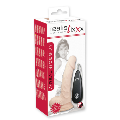 Tento realistický vibrátor s dálkovým ovládáním vypadá jako skutečný. Nejen svým žilkováním, ale i varlaty a staženou předkožkou.