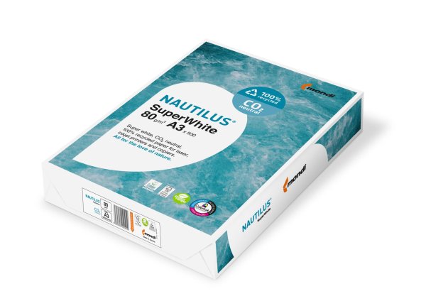 100% recyklovaný papír s vysokou bělostí Formát A3 Vhodný pro bezproblémový každodenní tisk a kopírování Určeno pro laserové i inkoustové tiskárny Certifikát Blue Angel, FSC, EU Ecolabel Certifikát CO2 …