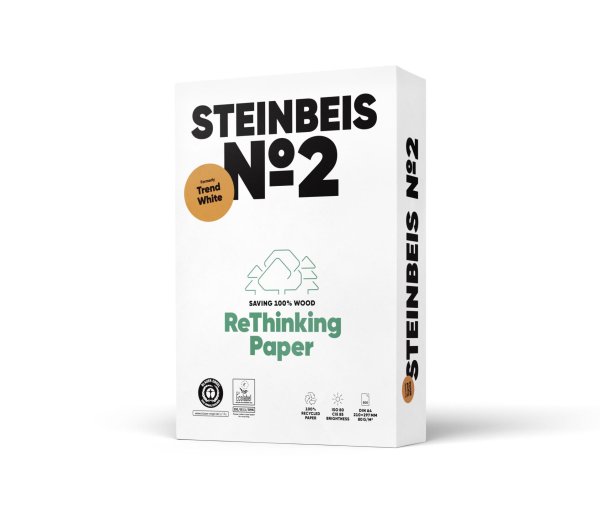 Steinbeis No.2 Trend White přináší do kanceláře udržitelnost Ideální papír pro každodenní použití v nejnáročnějších kancelářích Certifikováno Modrým andělem ("Blauer Engel") a ekoznačkou EU 100% vyrobeno …
