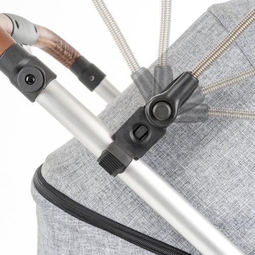 Snadná instalace Univerzální držák se přizpůsobí šířce rámu jakéhokoliv kočárku. Slunečník lze bezpečně připevnit na konstrukce s kulatým i oválným profilem a to jak na rukojeť, tak i na přední madlo nebo třeba přímo na rám kočárku.