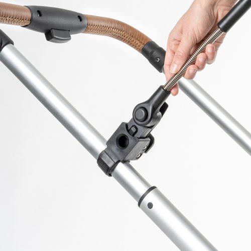 Jednoduché sundavání Ve chvílích, kdy slunečník nepotřebujete, stačí jej jednoduše vyjmout z držáku a uložit. Držák můžete ponechat připevněný ke kočárku, takže jakmile znovu vykoukne slunce, můžete slunečník opět nasadit a ihned použít.