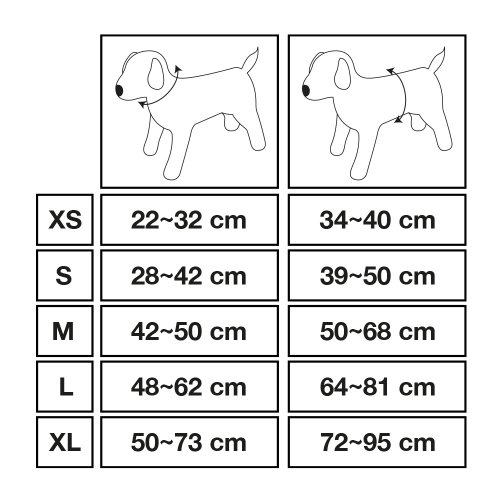 Velikost XL: určena pro psy s obvodem krku 50-73cm, obvodem těla 72-95cm