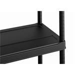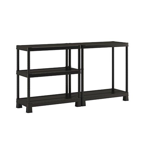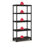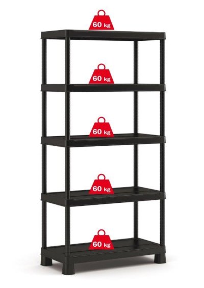 Skříň obsahuje celkem 5 polic s extrémní nosností, které unesou výrazně těžší předměty všeho druhu. Lze ji tedy využít pro skladování dílenského nářadí či zahradnických potřeb, kdy přijde vhod pro uložení náčiní, které by se jinam nevešlo. Regál rovněž můžete přimontovat na zeď pro větší stabilitu. Pro více úložného místa je regál vybavený pojezdy pro boxy typu Tribac (Scuba), do kterých můžete uschovat nejrůznější nářadí. Díky svému provedení v univerzální černé barvě vhodně doplní každý prostor.