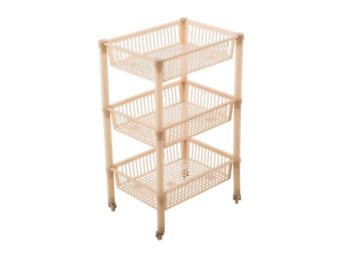 Plastový třípatrový regál na kolečkách vhodný do koupelny, pracovny, dílny, kanceláře apod. Rozměry sestaveného regálu jsou 35.5 x 26.5 x 62.5 cm. Regál dodáván v rozloženém stavu. Barva dle skladové dostupnosti. EAN 8606005430013