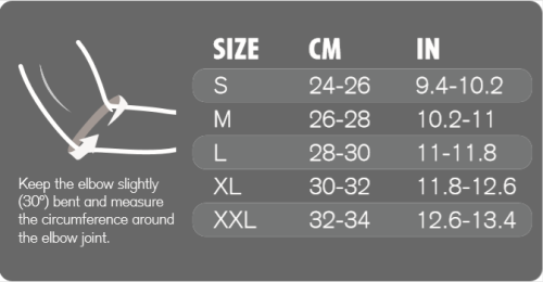 Proveďte měření podle pokynů na obale. Určete velikost bandáže (viz tabulka velikostí). Tabulka velikostí:
