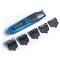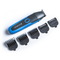 100% voděodolný Čepele z nerezové oceli Holicí hlava Hlava pro zastřihování chloupků 5 hřebenů (1.5 - 12 mm), nabíjecí Až 60 minut provozu 16 hodin nabíjení Kontrolka nabíjení Protiskluzová rukojeť
